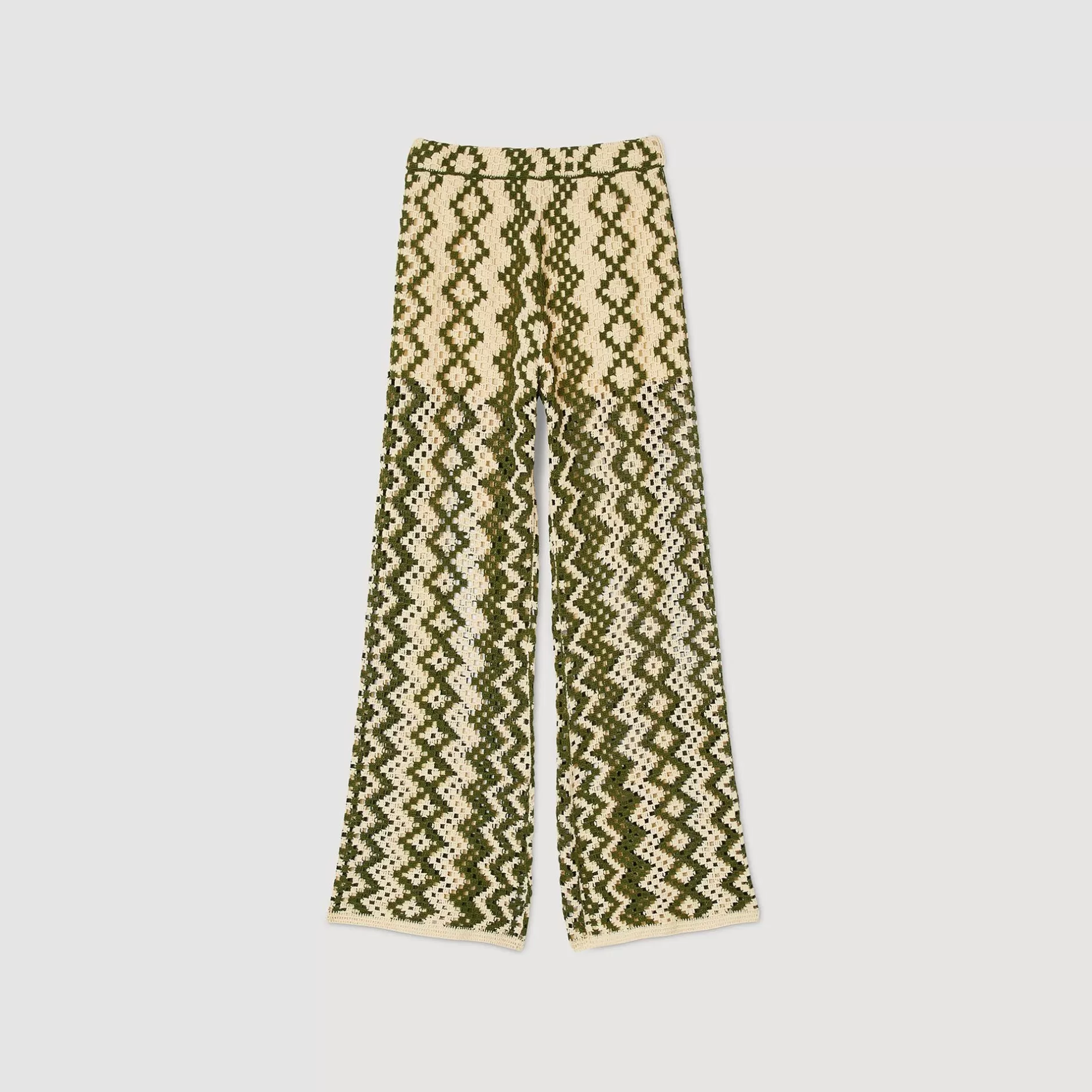 Pantalon en maille esprit crochet orné d’un motif géométrique contrasté et muni d’un élastique à la taille.