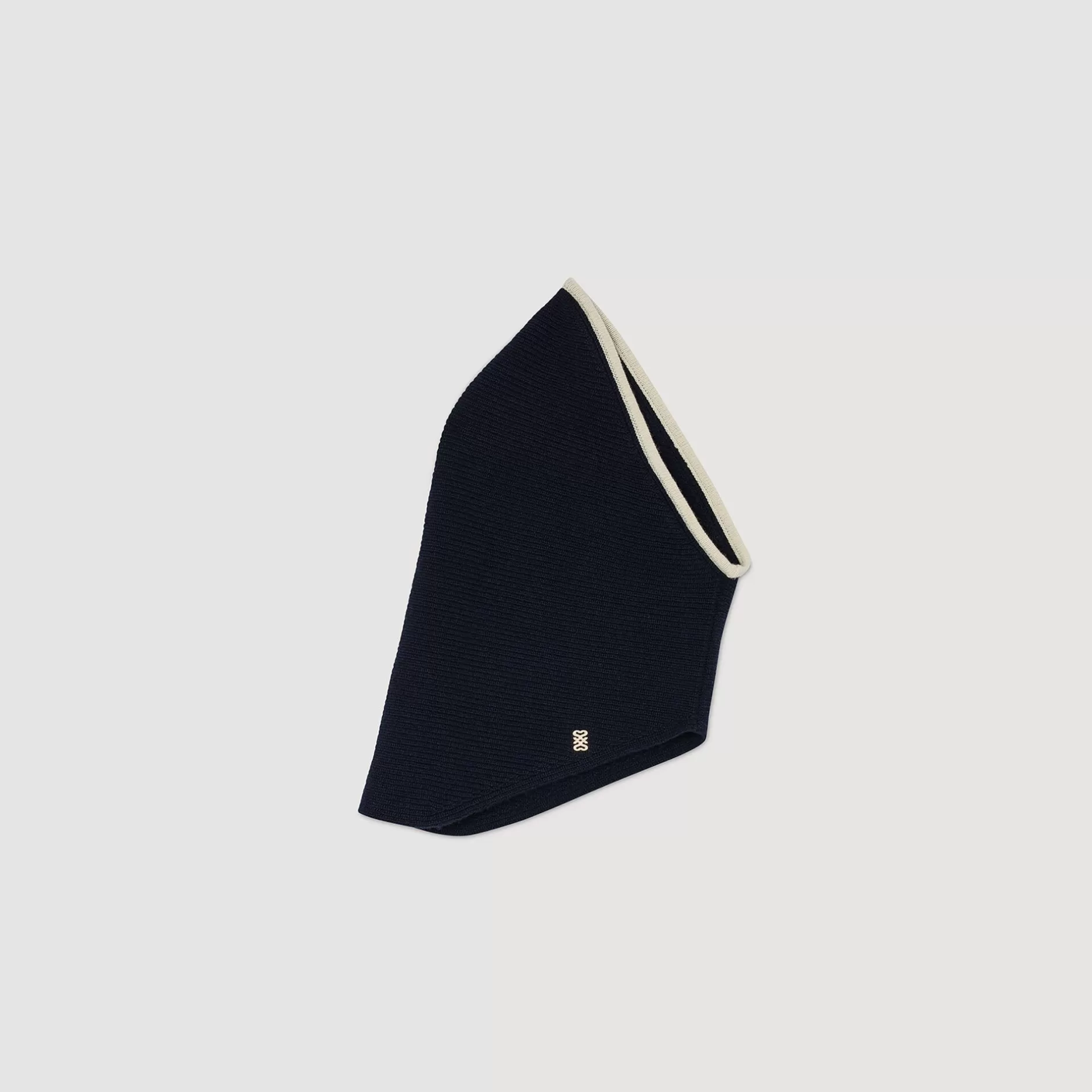 Snood en maille à côtes orné de finitions lignes contrastées. Écharpe tube en maille côtelée Sandro Femme Finitio…