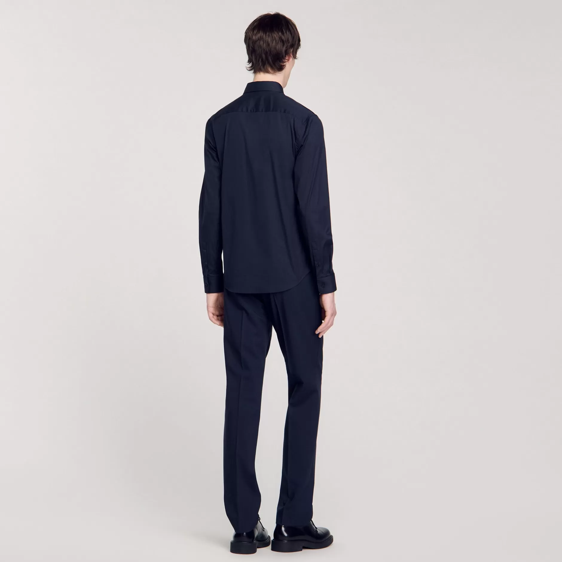 Chemise ajustée en coton stretch munie de manches longues à poignets boutonnés, d’un col classique et d’une fermeture boutonnée.