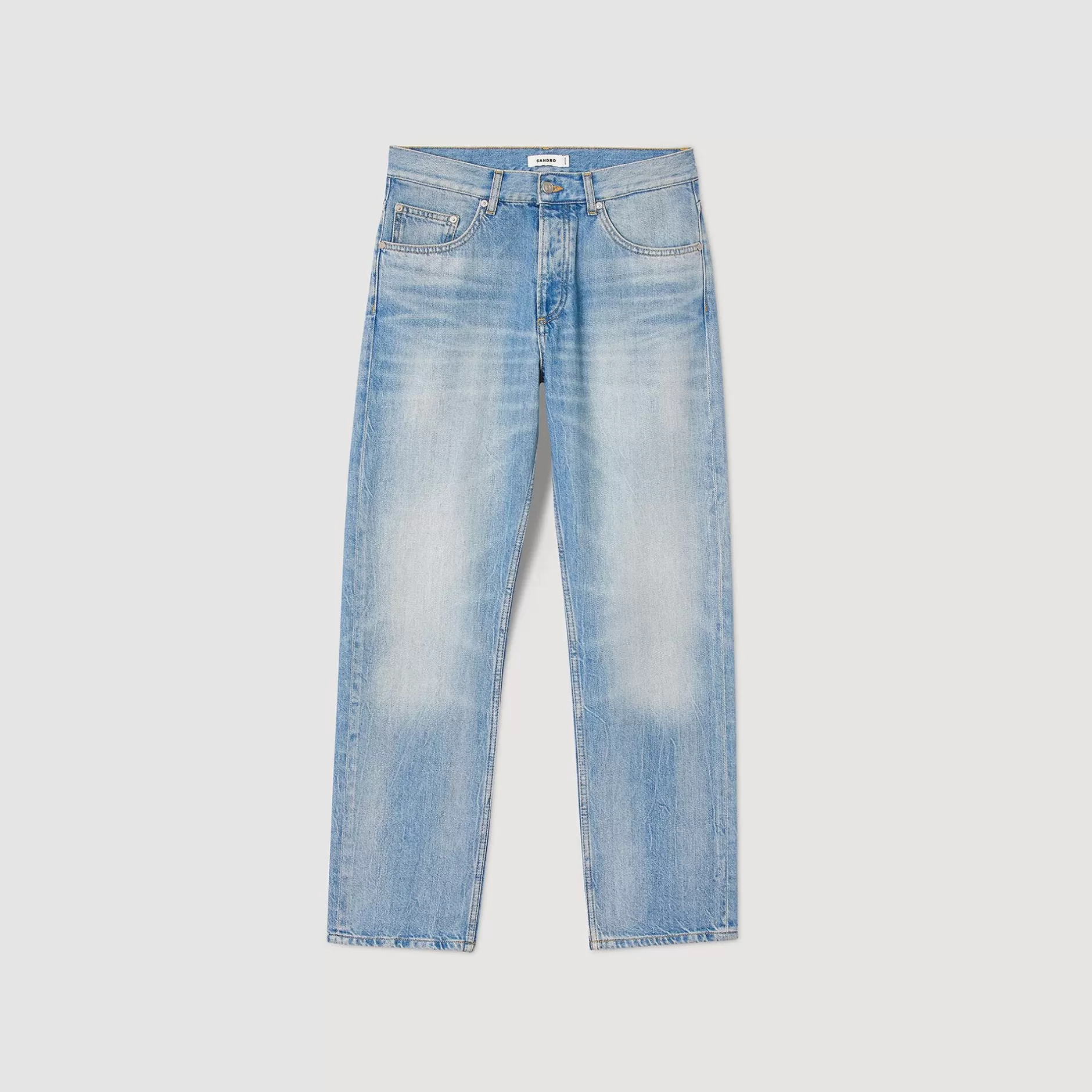 Jean droit en denim délavé muni de cinq poches, de passants ceinture et d’un jacron au dos.Jean en denim Sandro HommeE…