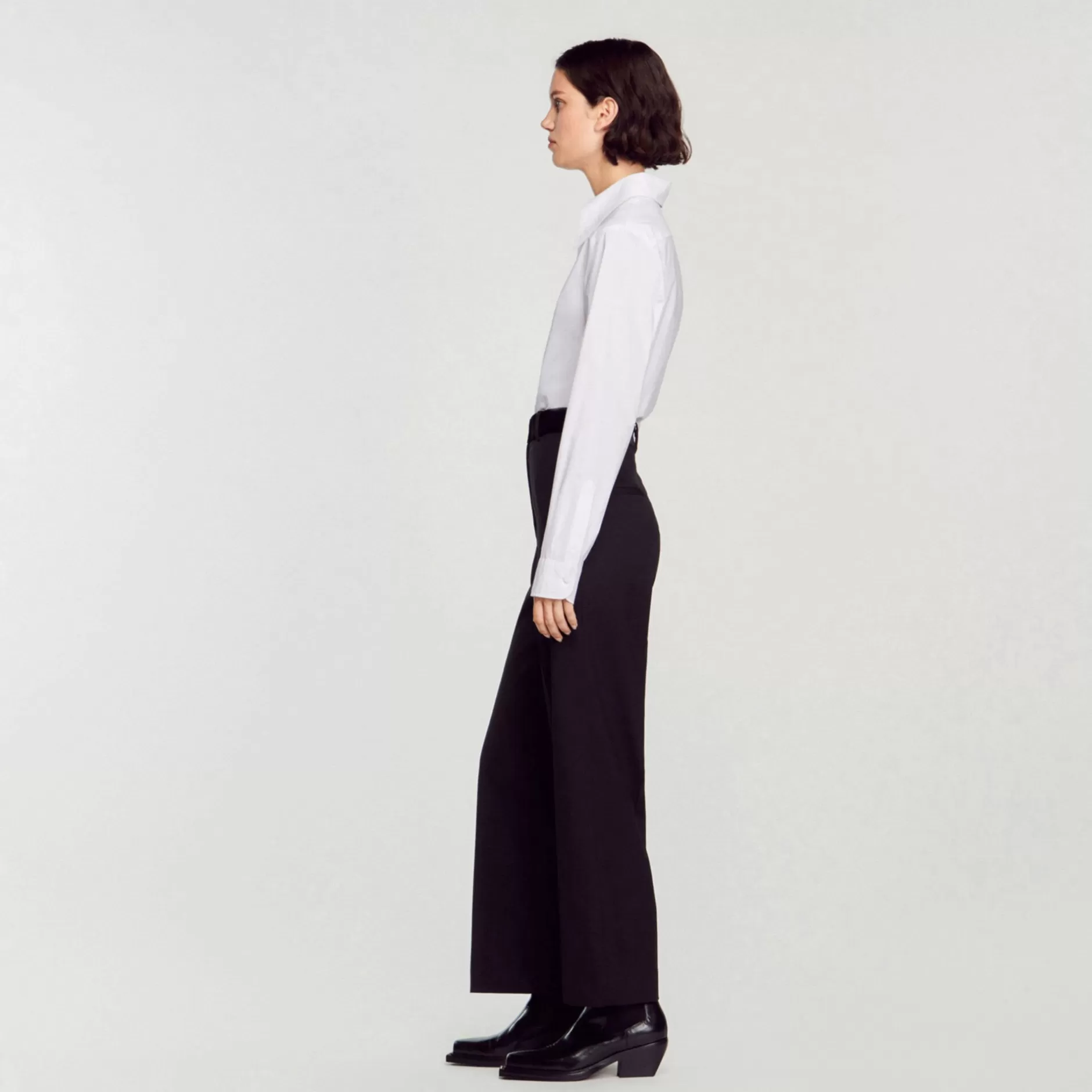 Pantalon droit muni d’une taille en velours contrasté, de poches italiennes et de poches passepoilées au dos.