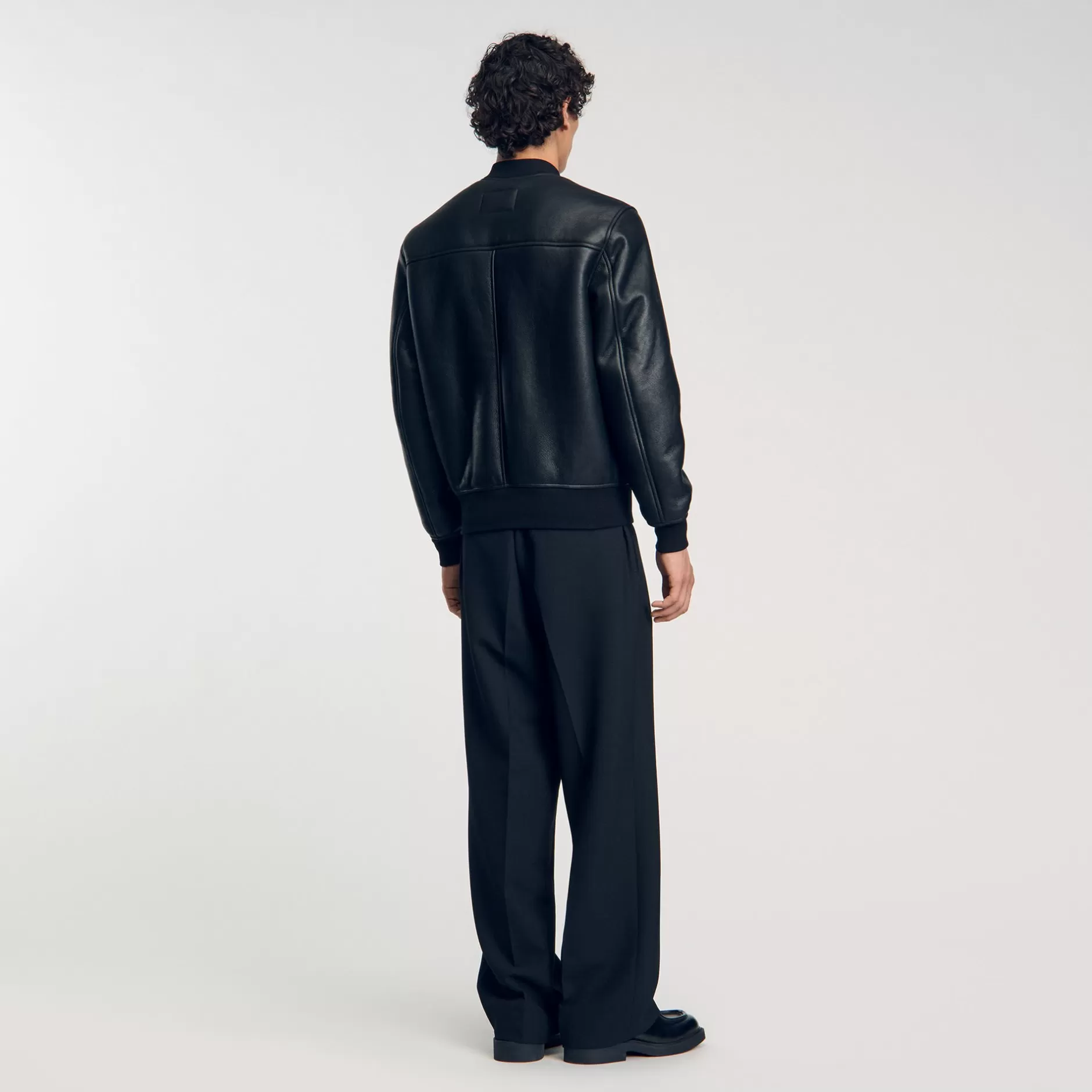 Bomber en shearling muni d’un intérieur fourré, d’un col, de poignets et d’une taille côtelés, ainsi que d’une fermeture zippée.