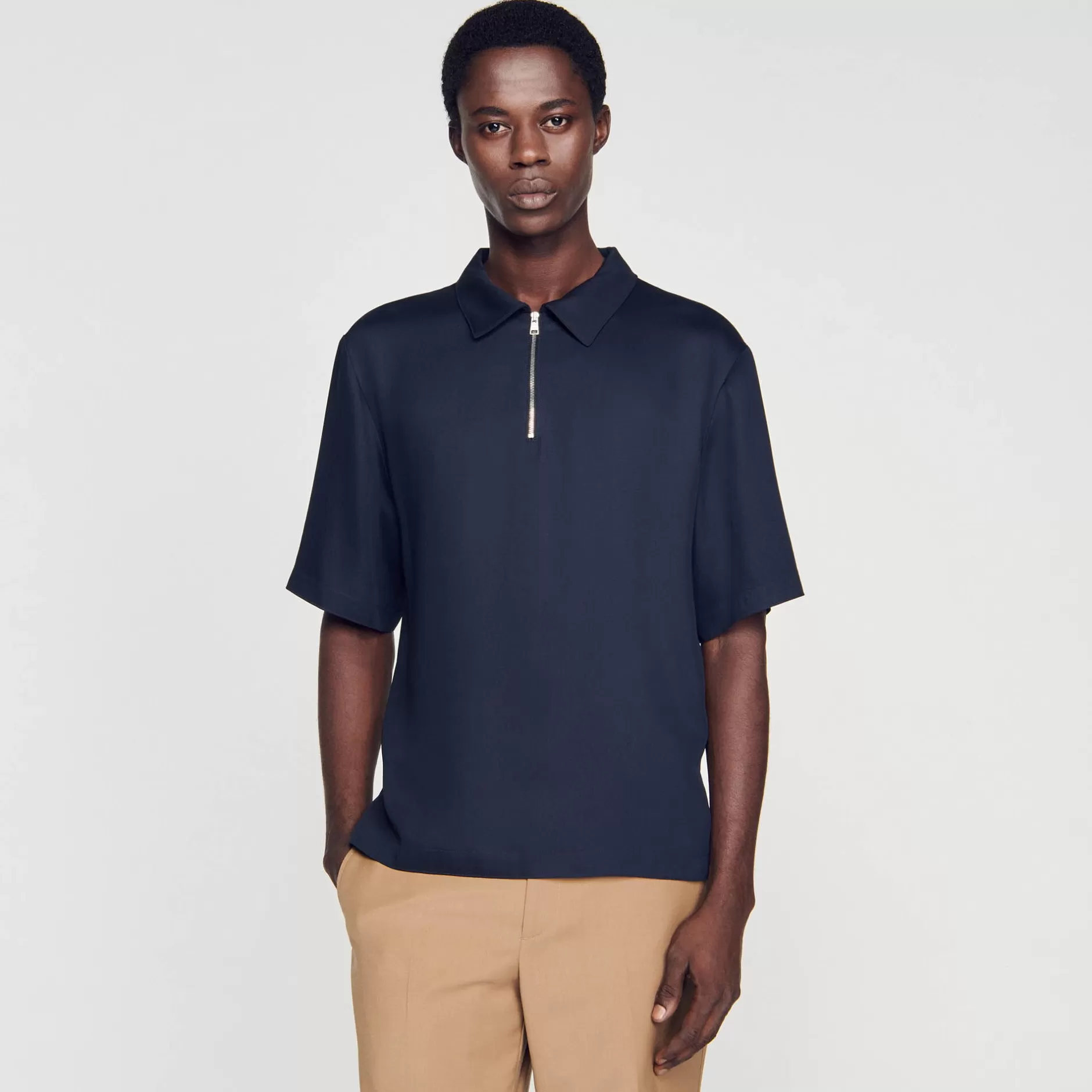Chemise fluide oversize esprit polo, munie d’un col zippé et de manches courtes. Chemise polo Sandro Homme Col zippé M…