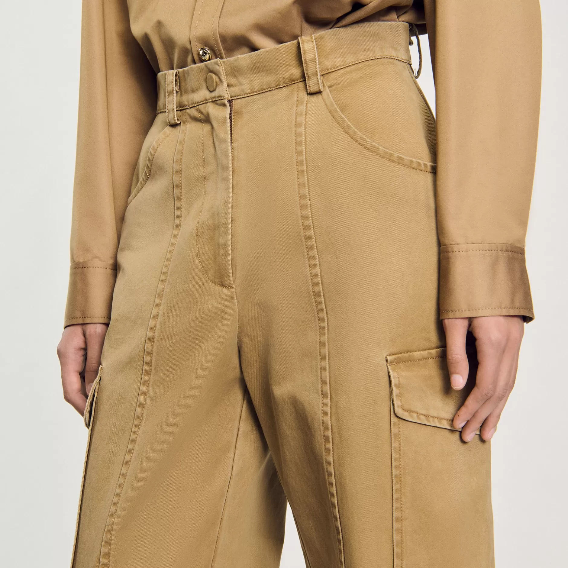Pantalon cargo à coupe large muni de grandes poches à rabats et de sangles sur les côtés. Pantalon cargo Sandro Femm…
