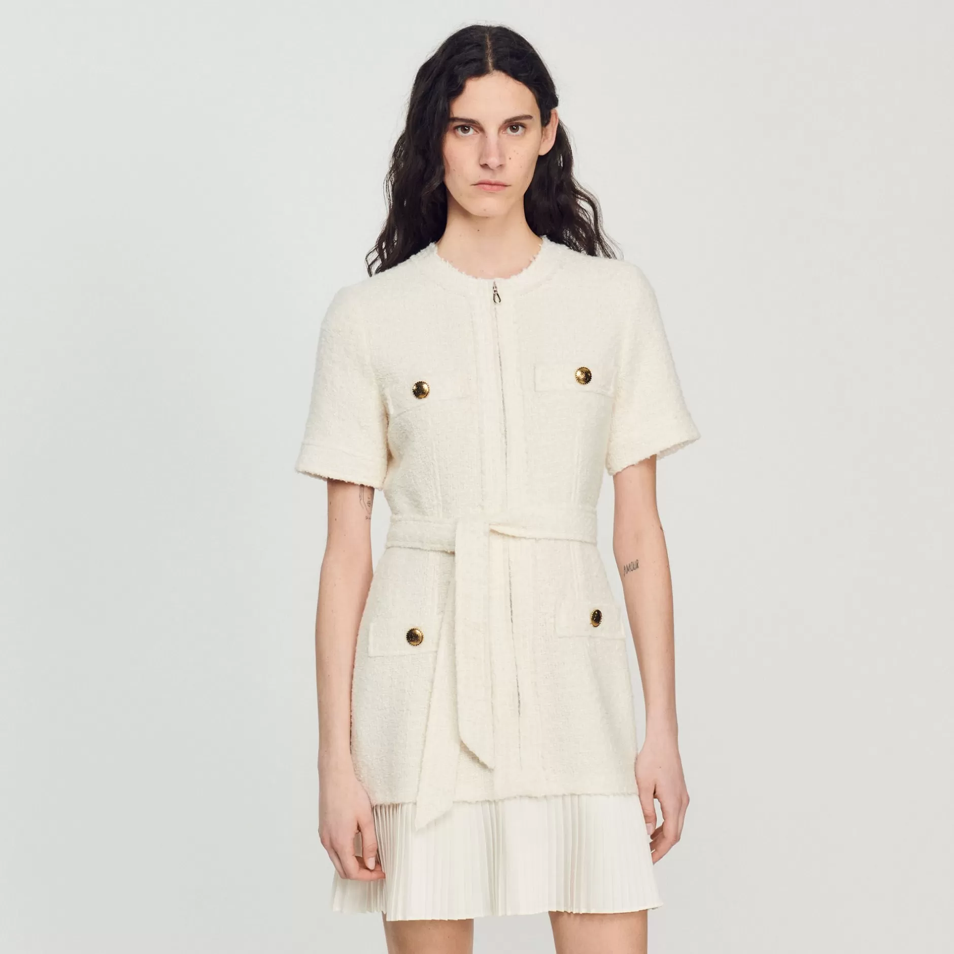 Clearance Sandro Robe Manteau En Lainage Effet Tweed Ecru