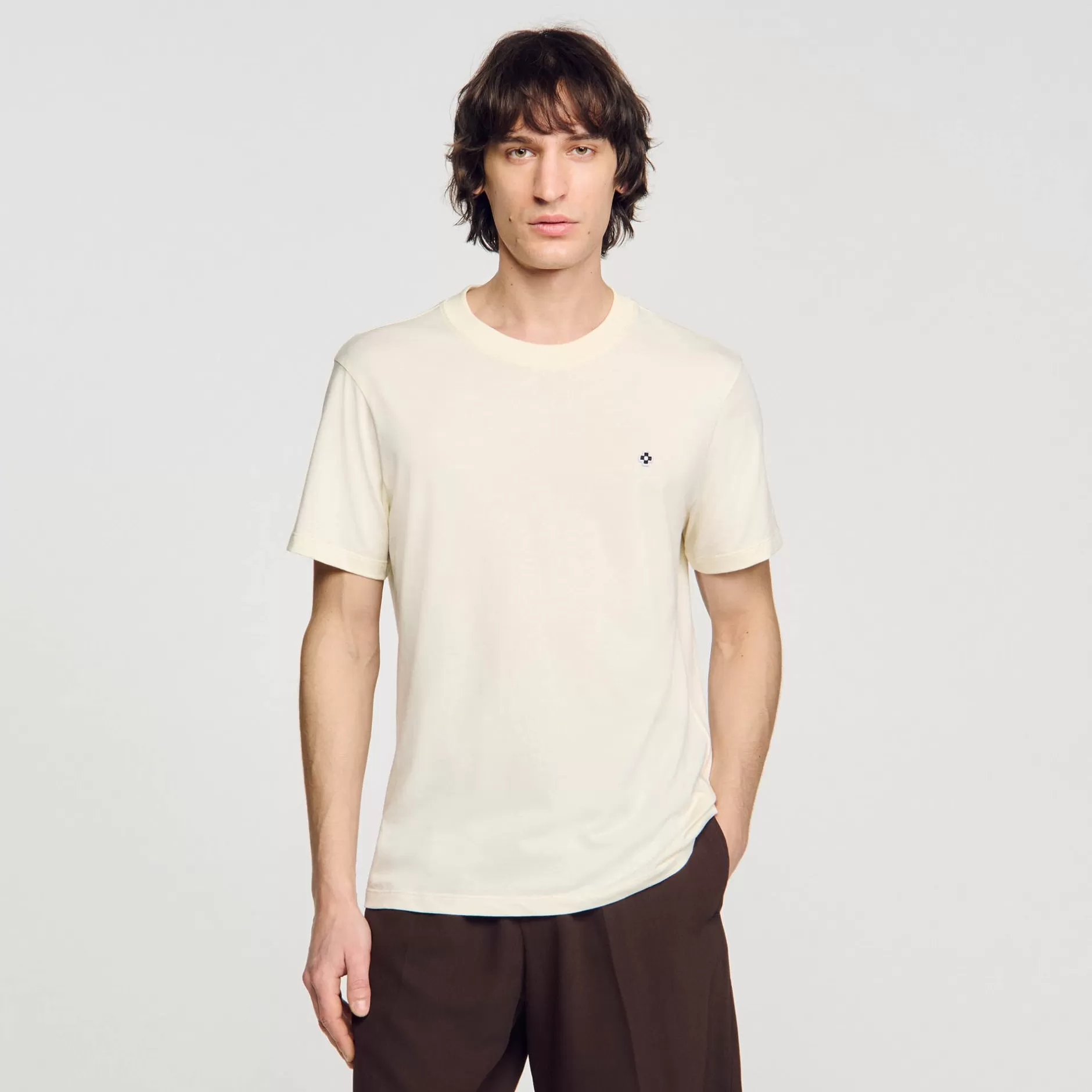 Fashion Sandro T-shirt Patch Square Cross Jaune