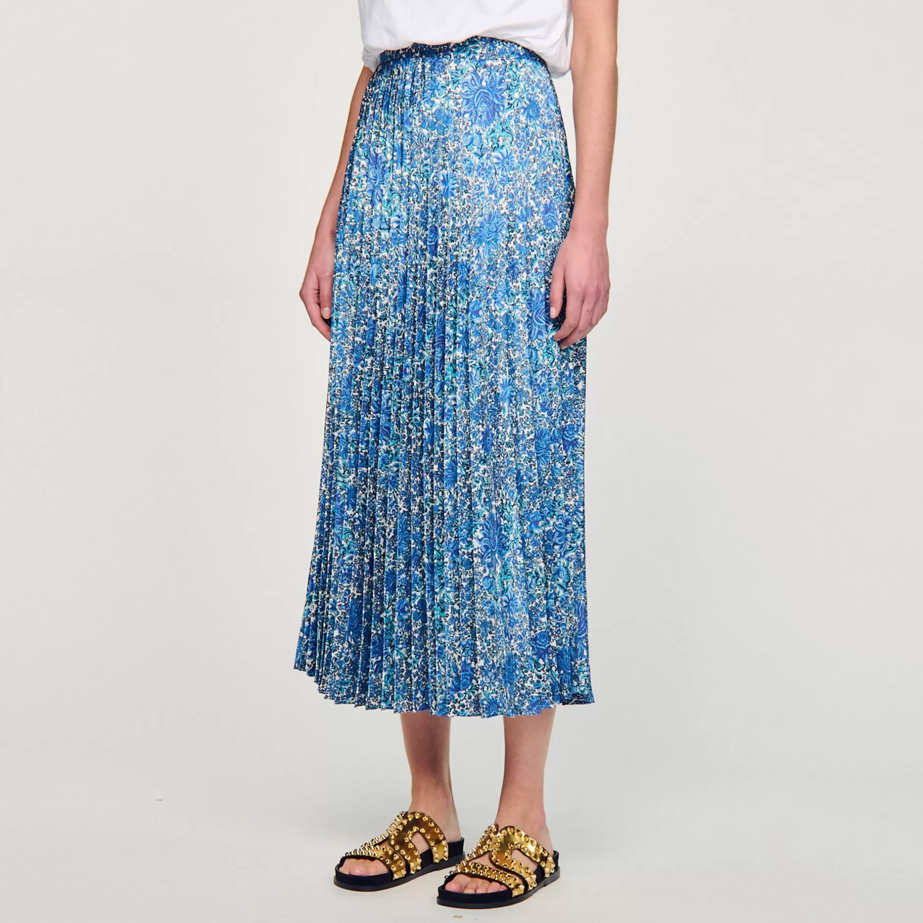 Jupe longue fluide et plissée ornée d’un imprimé « Indie Liberty », munie d’une fermeture zippée.