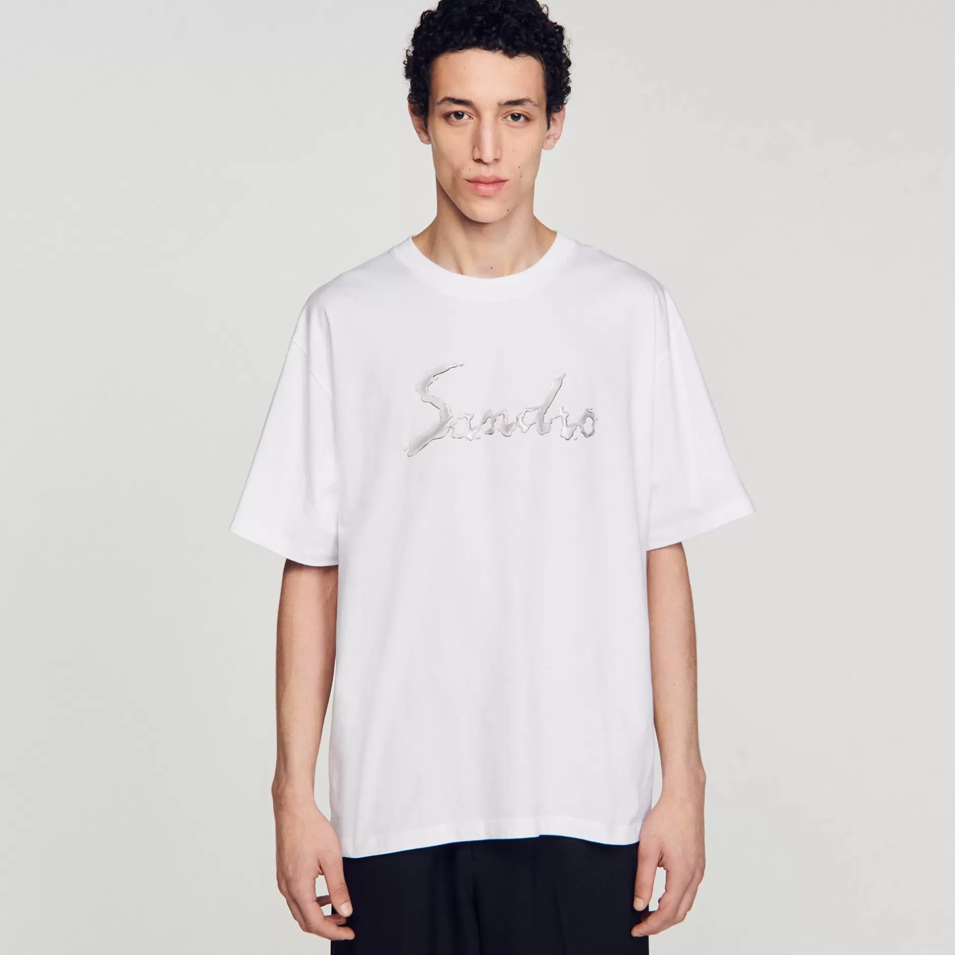Tee-shirt oversize en coton muni d’un col rond et de manches courtes, et orné d’un imprimé SANDRO en relief.