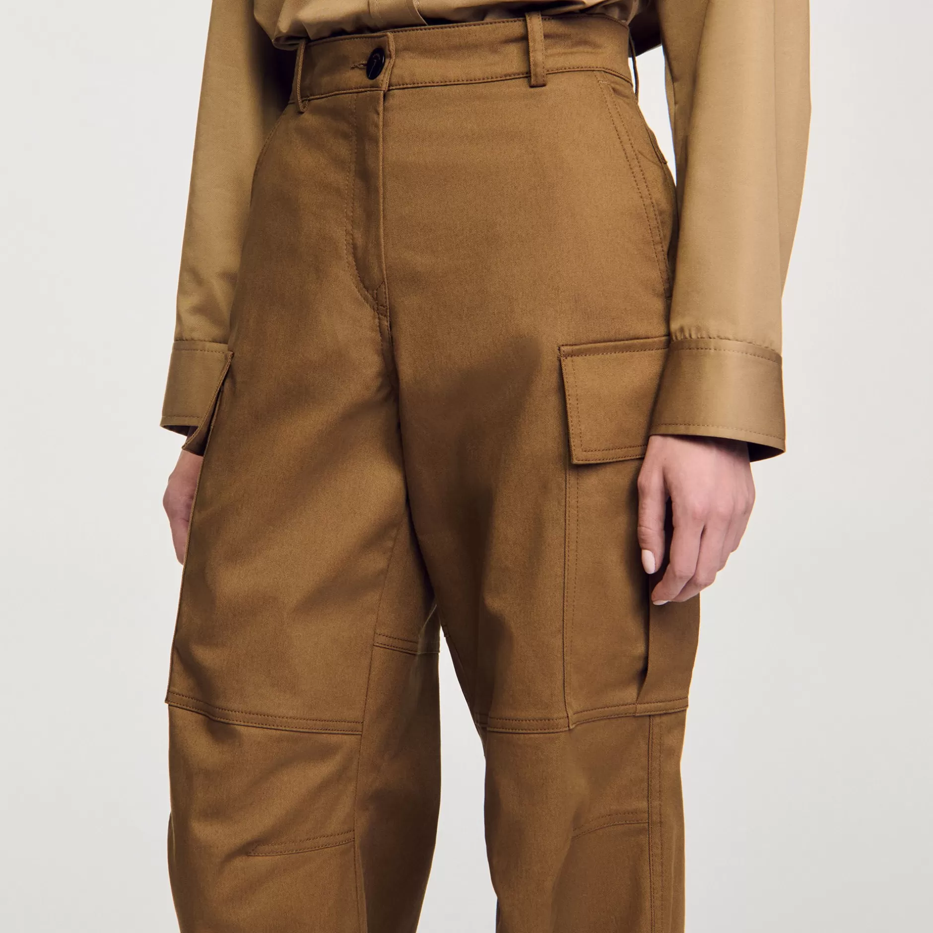 Pantalon droit à poches cargo sur les côtés, muni de passants à la ceinture. Pantalon droit Sandro Femme Poches carg…