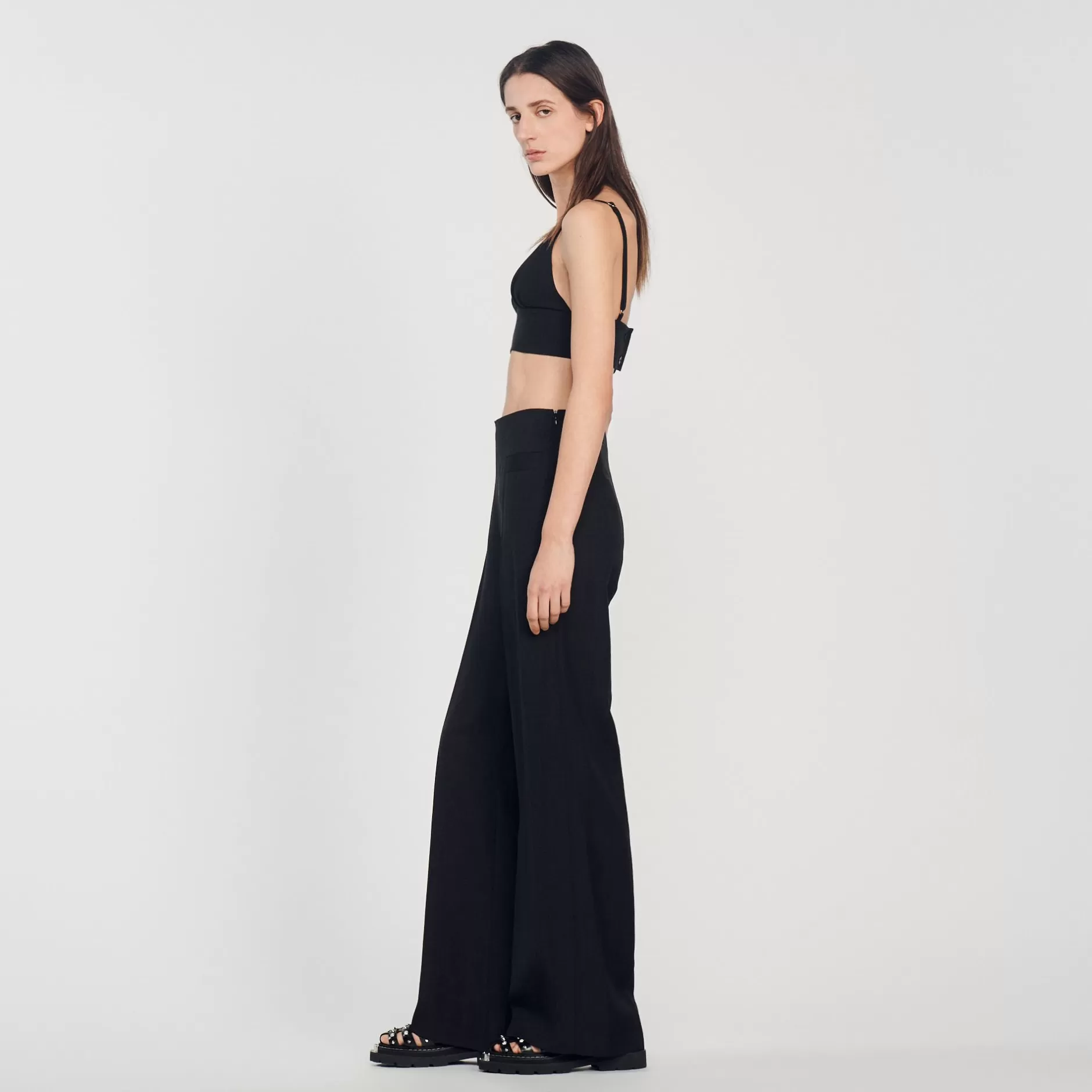 Pantalon taille haute à jambe large, muni de poches passepoilées sur les cotés. Pantalon taille haute Sandro Femme Ja…