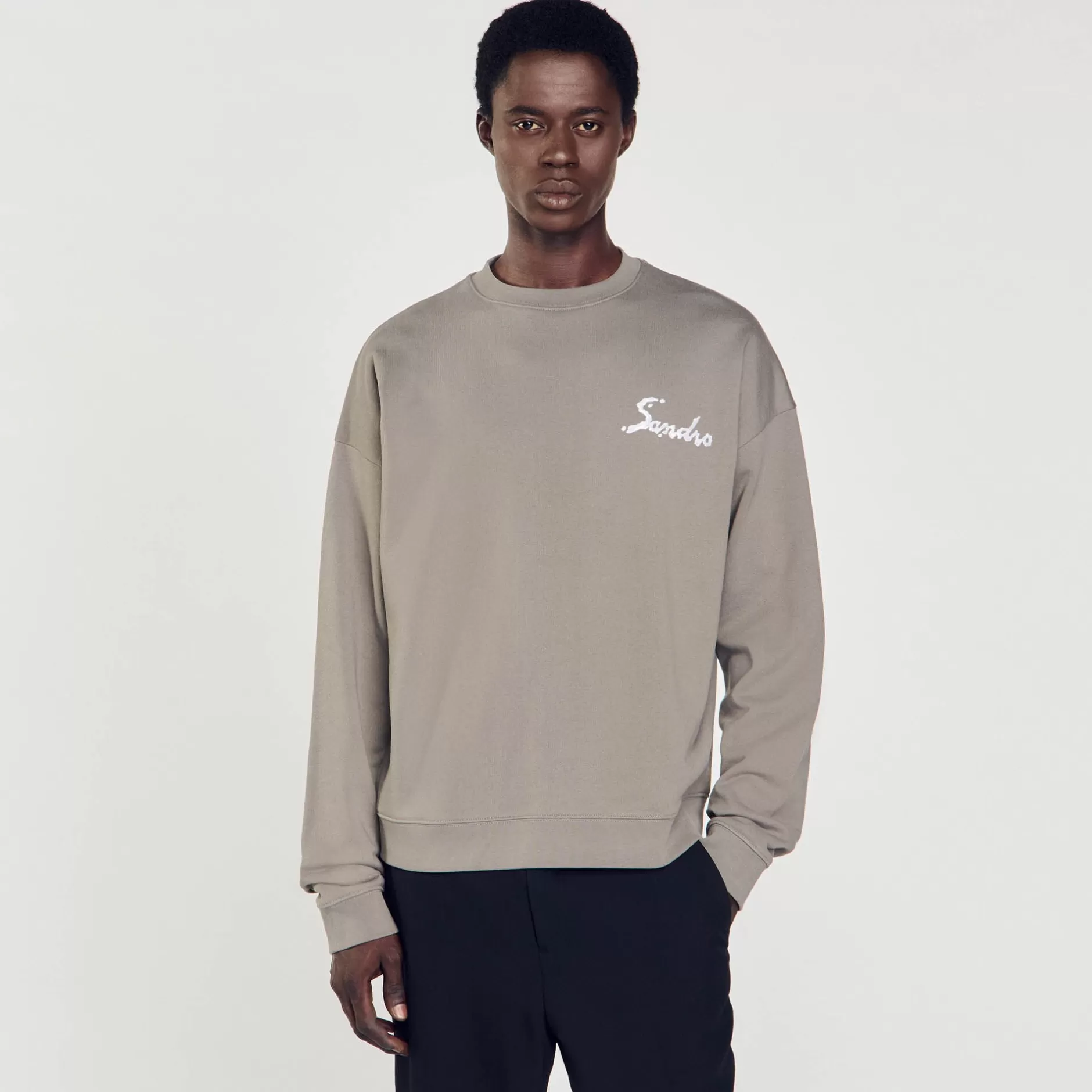 Sweatshirt oversize en coton muni d’un col rond et de manches longues, orné d’une application SANDRO en relief contrastée à la poitrine.
