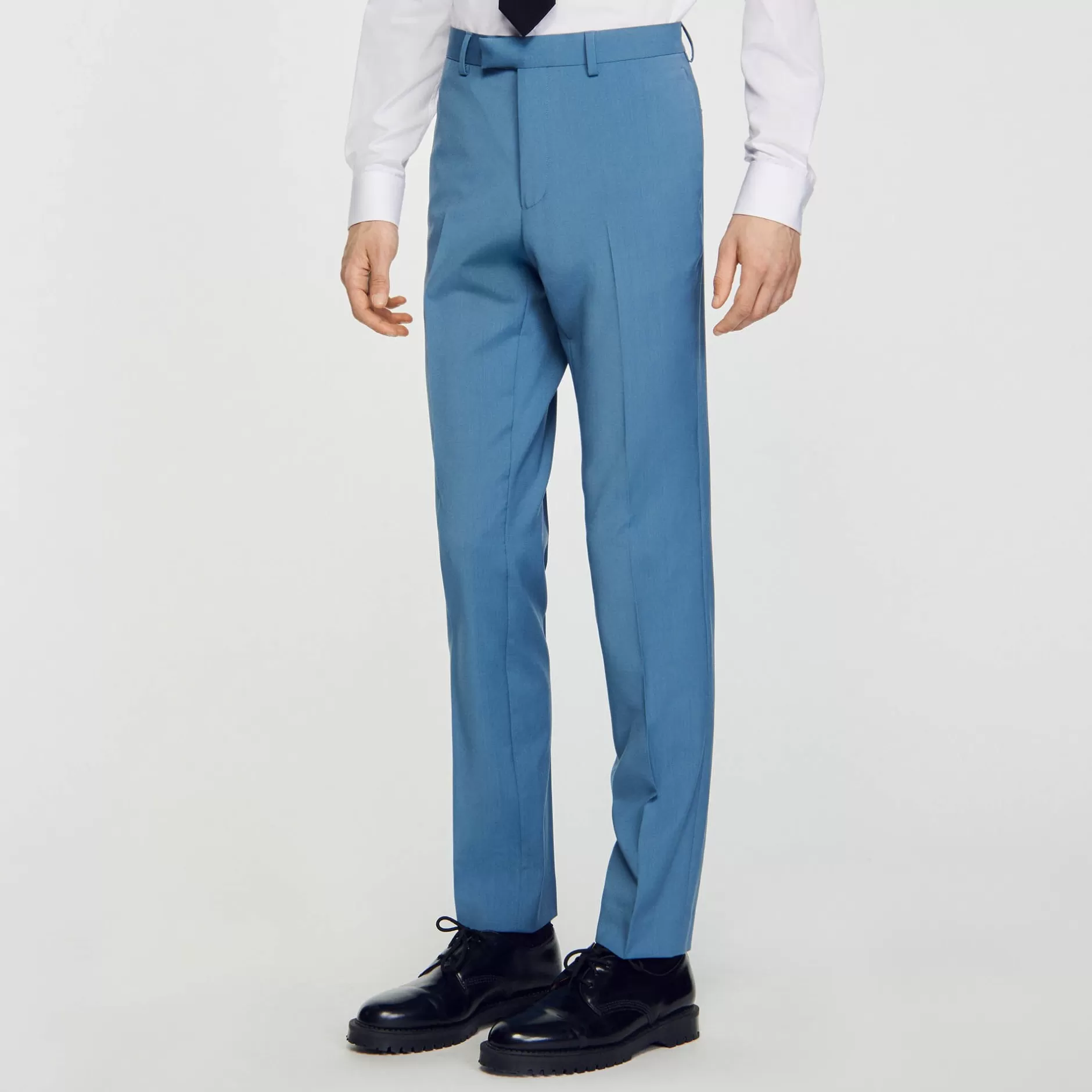 Pantalon de costume droit en laine muni de deux poches sur le devant et de deux poches au dos.