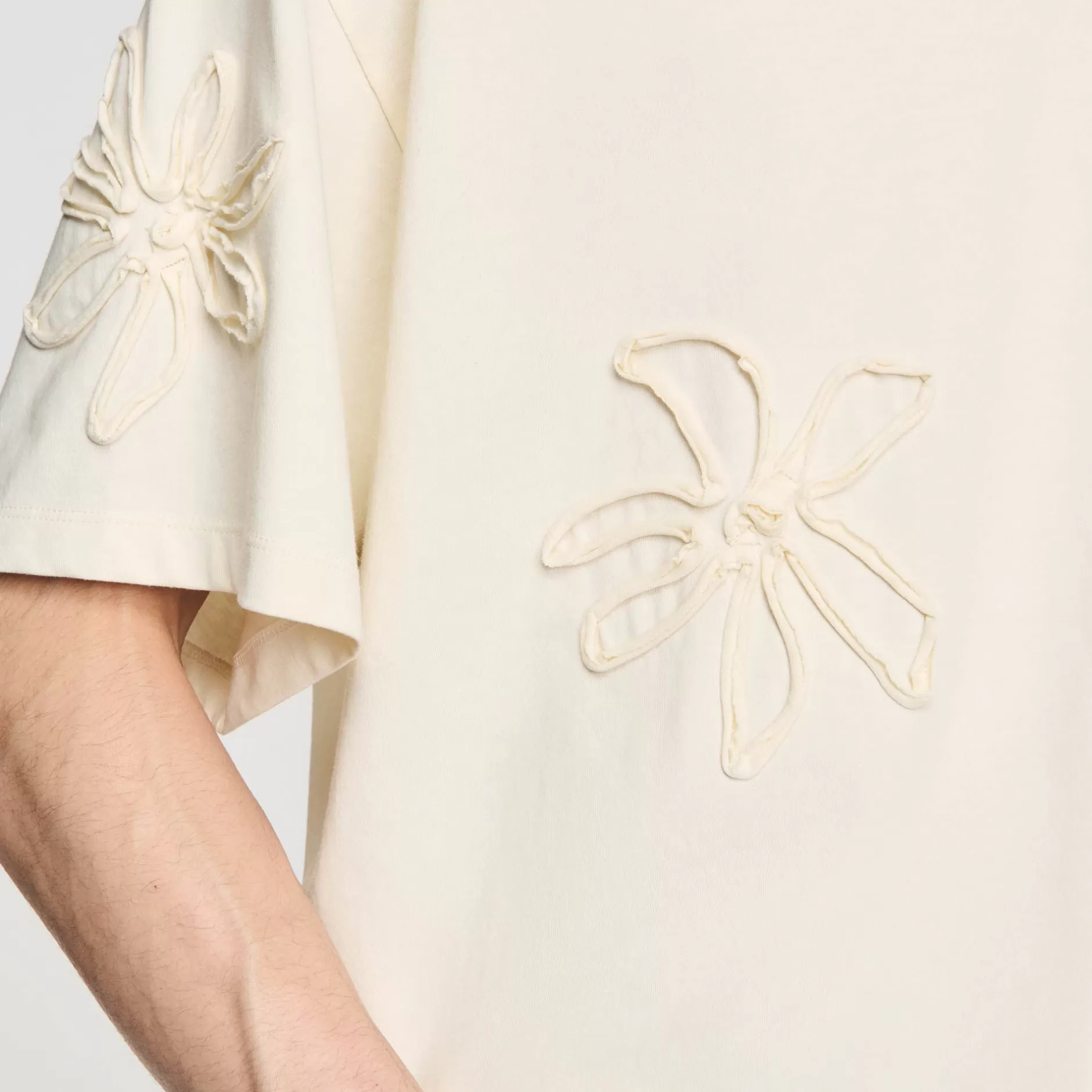 Tee-shirt en coton muni d’un col rond, de manches courtes et orné de fleurs en biais ton sur ton. Tee-shirt en coton Sa…