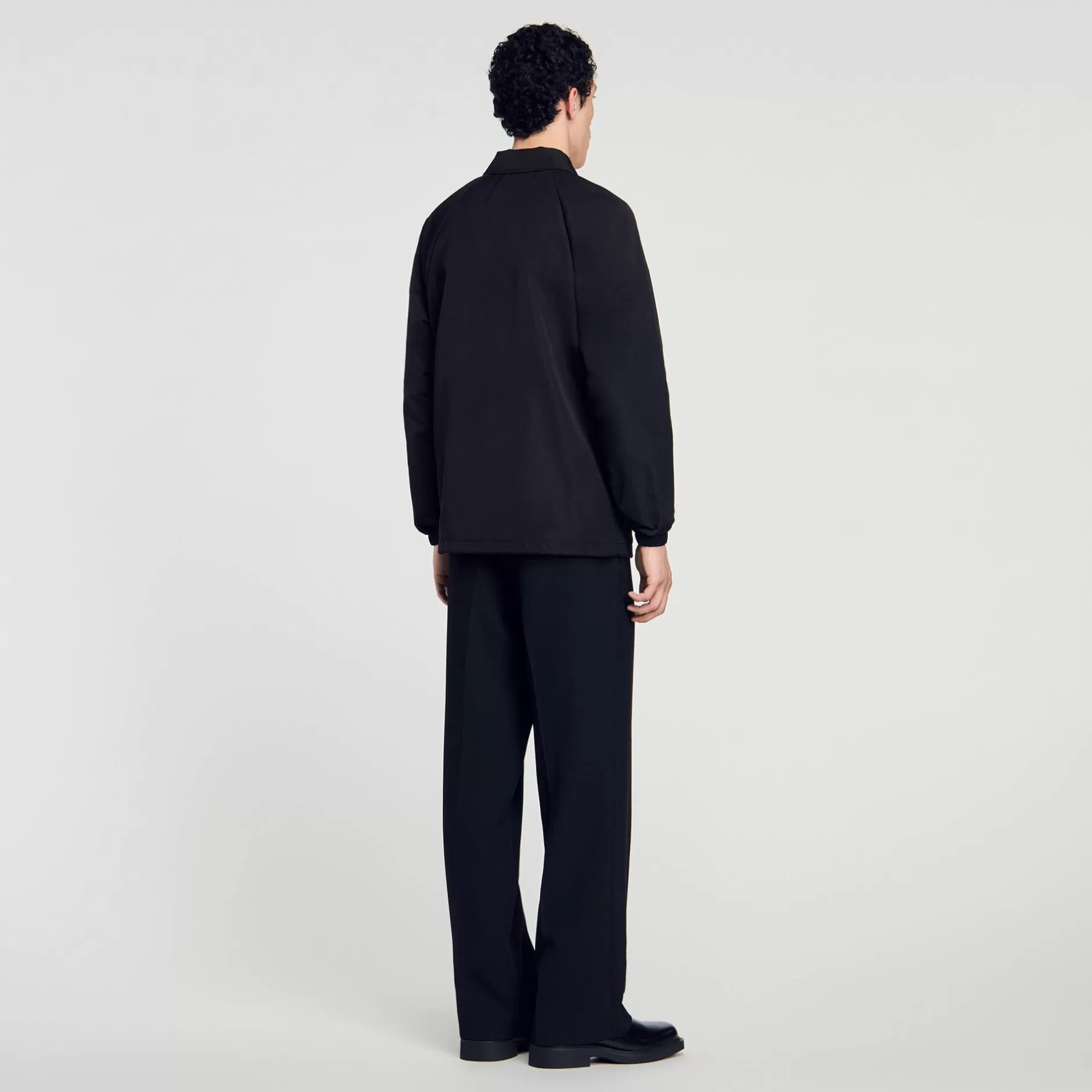 Veste en matière technique à coupe droite, munie d’un col chemise, de manches longues à poignets élastiqués, et ornée d’un logo SANDRO en métal.